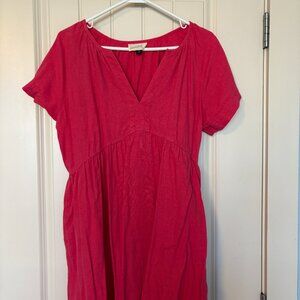 Universal Thread Linen Blend Mini Dress MED Babydoll Short Sleeves Pink