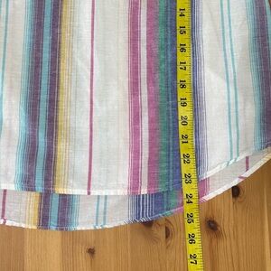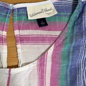 linen blend tank, striped summer top, sleeveless scoop neck, lightweight linen blouse, Universal Thread tank, coastal casual style, vacation outfit top, warm weather essentials, pastel stripe tank, beach day outfit, breathable everyday top, rainbow stripe tank, resort wear blouse, boho casual tank, easy summer layering