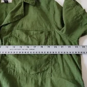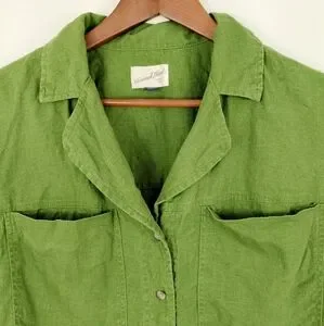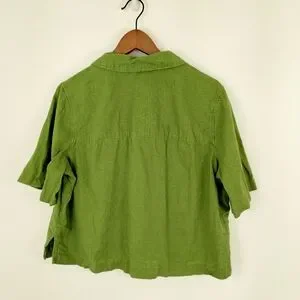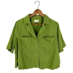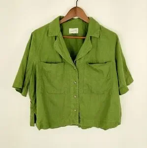 Universal Thread Green Linen Cropped Button Down Top size Medium.