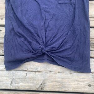 Soft and casual navy blue t-shirt from Universal Thread in size XS. Features a crew neckline, chest pocket, and a stylish knot detail at the front hem. Lightweight and comfortable โ perfect for everyday wear!