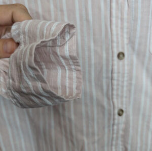 The pink and white stripes offer a classic and timeless look, while the button-down design adds a touch of sophistication.