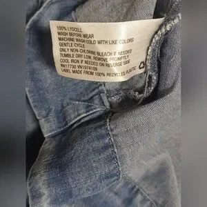 Casual chambray top with button-down front. Soft and comfortable fabric.
