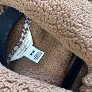 Soft teddy jacket with button closure. Features chest pockets. Ideal for chilly days.