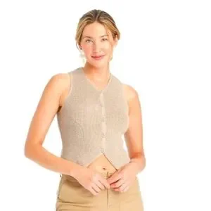 Dress up for cool-weather days in chic style with this Button-Front Sweater Vest from Universal Thread M. Tailored in a standard fit, it features a breathable cotton-blend shaker construction for cozy wear and is designed with a full front button-down closure. You can pair it with anything from jeans to skirts to pants to highlight your versatile style.