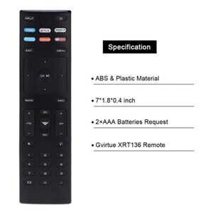 Universal XRT136 Remote Control compatible with various Vizio Smart TVs, including models D24f-F1, D43f-F1, D50f-F1, E43-E2, E60-E3, E75-E1, M65-E0, M75-E1, P55-E1, P65-E1, P75-E1, and more. Perfect replacement for lost or broken remotes. Please note, this remote does NOT come with instructions or batteries.(you can google instructions online)