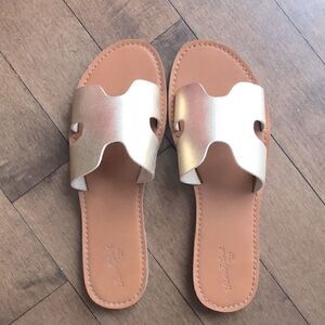 Beautiful Hermès inspired gold and tan slippers Barely worn.