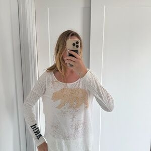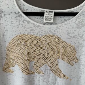 Rhinestoned bear in the middle—loose fit. Fits size XS to M. Rhinestones are gold. Brand is PINK by victoria's secret.