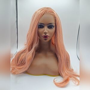 Uniwigs Coral Doll Pastel Coral Pink Long Wavy Synthetic Lace Front Wig - lace has been cut but wig has never been worn. Like new condition.