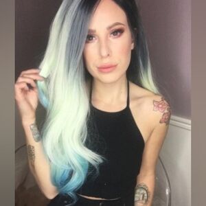 Uniwigs Pacific Palisades Long Rooted Ash Blonde & Teal Ombre Lace Front Wig - lace has been cut but wig has never been worn. Like new condition.