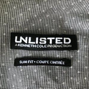 Unlisted kenneth Cole Grey & White Dress Shirt - Button Up - Long sleeves - Slim Fit - wrinkle free - excellent pre-owned condition
