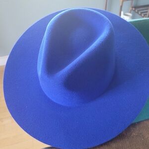 Stylish blue wide-brim hat. Perfect for sunny days.