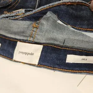 I only photographed one of the sizes. I noticed a small pull flaw in the denim of the size 26, shown in pics. Other sizes may or may not have this flaw.