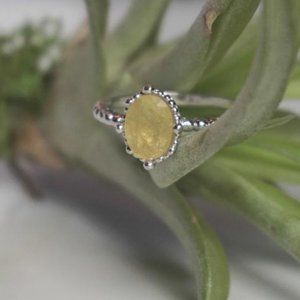Beautiful 8x6mm untreated yellow Sapphire stone set in a .925 sterling silver ring setting, size 7.25. This ring would make an excellent gift for an anniversary or birthday (especially for September birthdays!).