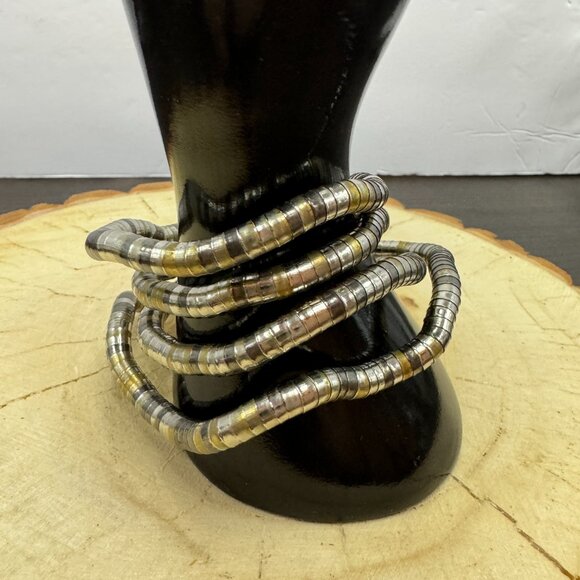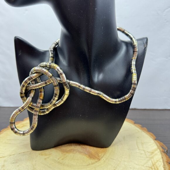 Unusual Snake Metal Twisted Necklace or Bracelet Modern Silver and Gold Tone