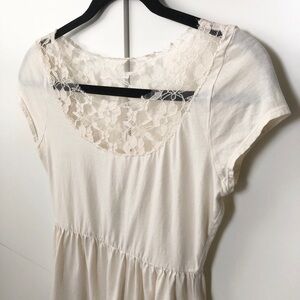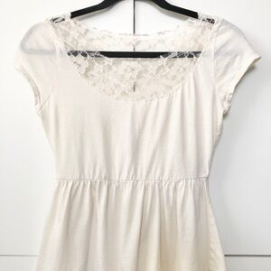 A stunning lace top with lace paneling in both the front and the back! The back is a deeper scoop than the front.