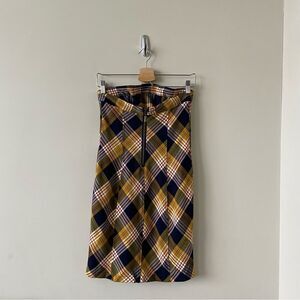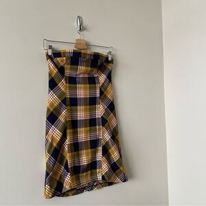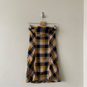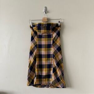 Perfectly plaid mini dress from Urban Outfitters. Built from an allover plaid fabrication in a slim-cut, seamed panel construction. Topped with a banded strapless neckline. Finished with a partial zipper closure at the back.