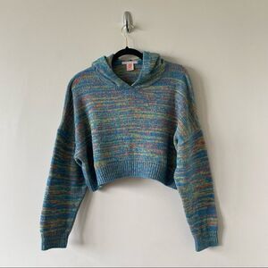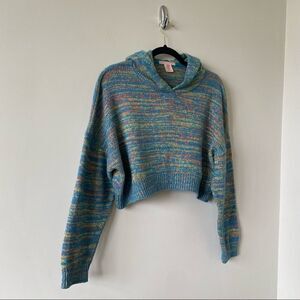 Essential knit hoodie from UO with a space dye knit construction. Relaxed fit with batwing-style sleeves and topped with a hood. Finished with a cropped hem.