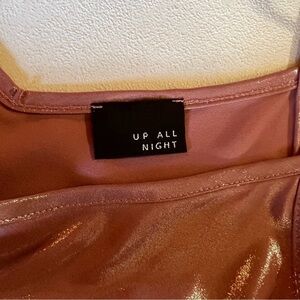 Up All Night Shiny Pink Tank Top with Spaghetti Straps, Size Small.