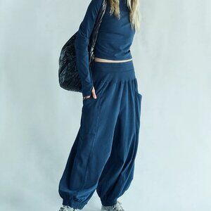 Features: Top: Mock neckline; long sleeve style; thumbhole detail Pants: High-rise design; harem-inspired silhouette; exaggerated pockets; elasticated waist and ankle cuffs