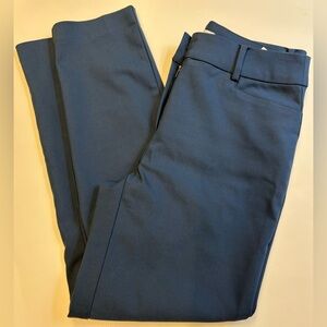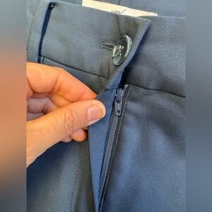 Description: Elegant navy blue dress pants. Perfect for work, travel office. Features a sleek design. 4 pockets (2 front, 2 back). Zipper and bar closure.