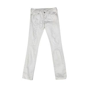 • White Distressed Skinny Mid Rise Mavi Jeans