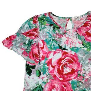 • Soft Stretchy Floral Short Sleeve Top with Ruffle Sleeve