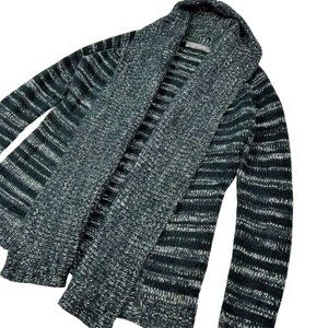 • Open Front Heathered Black and Grey Knit Cardigan