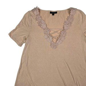 • Peach Soft and Flowy Short Sleeve Top with From Keyhole Detail