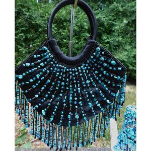 Upcycle an evening satin bag with turquoise sequin beads lovely fringe