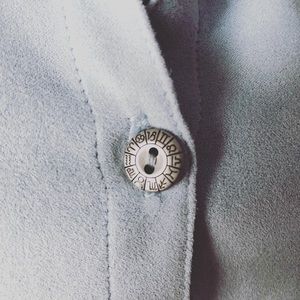 Adorable upcycled mini dress with zodiac buttons.