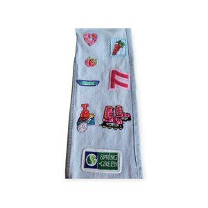- Fabric: Denim with patchwork