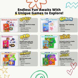 Upgraded Kids Card Games Pack 6 Decks Go Fish Old Maid War Slap Jack More