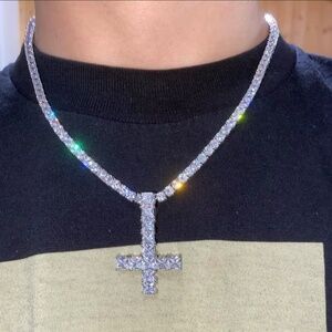 Upside Down Cross Necklace | Opium Hip Hop Chain | Inverted Cross Pendant |