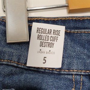 Urban Basics U2B | Denim Blue Jean Shorts Rolled Cuff Distressed Destroyed 5 NWT