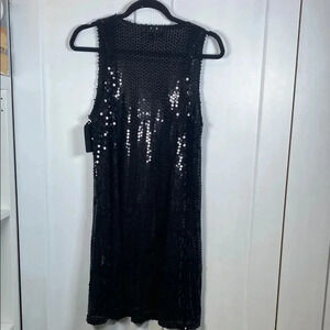 This sleeveless black mini dress by Urban Behavior features a shimmering sequined fabric with a scoop neckline, perfect for glamorous formal occasions.