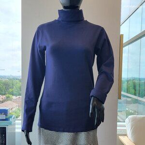 A long sleeve and high neck top with a soft and warm material with a solid navy blue colour. A good choice to wear on a daily life or on some special occasions like office, school, and travel. Easy to match with cardigans, coats and jackets. Keeps you warm on cold days. Also can be worn in autumn.