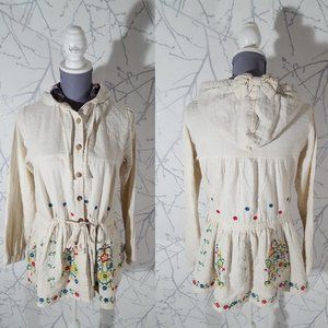 Urban Culture Ivory Floral Embroidered Button Front Cinch Waist Hoodie