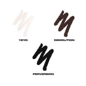 - 3 Full-size eyeliner pencils: Perversion (Matte Blackest Black), Demolition (Matte Dark Brown), and Yeyo (Metallic White)