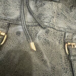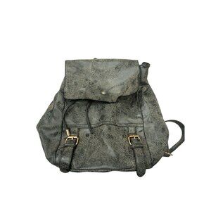 Gray rustic/ distressed color Cute little backpack for all essentials 12x12x5 Has 1 front pocket and 2 side pockets Also has secret pocket in back for phone or valuables