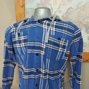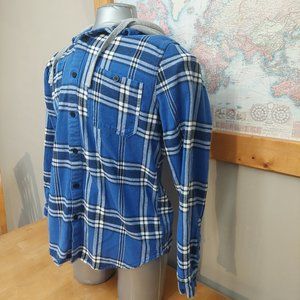 Urban Heritage Blue Hooded Plaid Long Sleeve Cotton Shirt Men's M/L