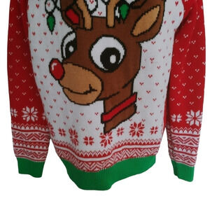 Urban Heritage Happy Holiday Rudolph Christmas Sweater Red White Green XS