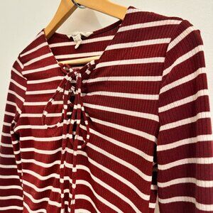 ๐ Urban Heritage Striped Ribbed Top- Lace-Up Front, Size S