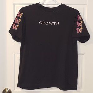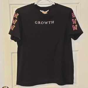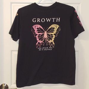 Urban Kids Girl's Black Growth Butterfly Short Sleeve T-Shirt-Size: Large/14-16