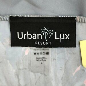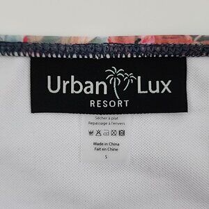 New with tags, Urban Lux Resort 3 piece matching bikini top, bottom and sarong with a tropical all over print, size Small.