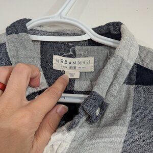 Urban Man 100% Cotton Checkered Button Down Shirt Black White Size Medium