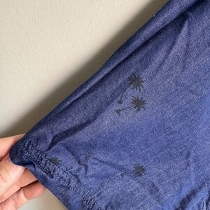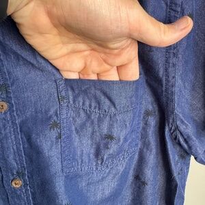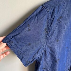 Urban Man Tropical Palm Men's Short Sleeve Cotton Blend Island Shirt Navy M