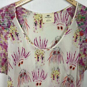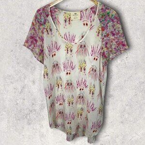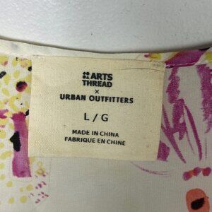 Rare Arts Thread x Urban Outfitters Make It Camille Festival Tunic Dress. Women's size large. This is the art student design winner. Lux silk tee dress from the collective at ARTS THREAD in an exclusive boho-modern print with contrasting short raglan sleeves. Complete with a rounded shirttail hem and a scoopneck in a drapey fit. 100% silk. Hand washable. Very good pre-loved condition. No visible flaws.