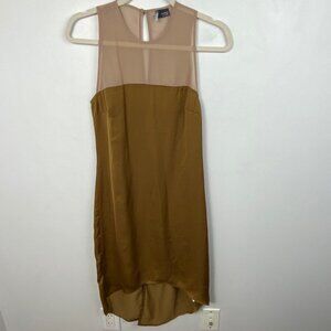 Urban Outfitters Sparkle & Fade High Low Retro Dress. Beautiful brown colour with two toned colour-blocking (beige at the top). 90s vintage silky bronze (but is poly). Women's size small. Very good pre-loved condition. No flaws.