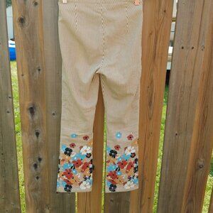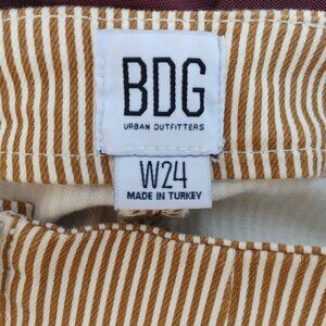 Urban Outfitters BDG Mustard Striped High Waisted Pants with Floral Hem W24