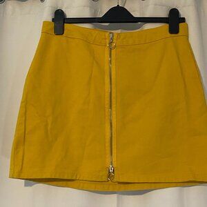 Urban Outfitters BDG Yellow high-waisted A-line skirt with front full zipper. The material is a mock denim fabric, it is sturdy but lightweight.